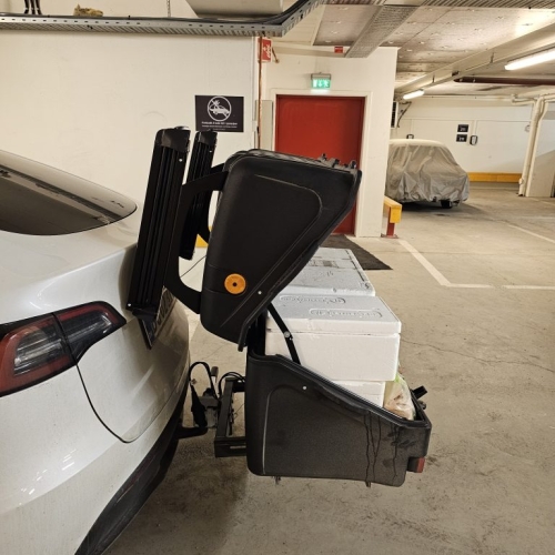 Yderst robust Towbox lavet i en yderst robust konstruktion. Den kommer samlet, og der er mulighed for at monterer skiholder ovenpå (tilkøb). Åbningen er hele 75 cm, og den har et smart udtræk, som gør det muligt at komme i bilens bagagerum. Der er transporthjul på kassen, så den er nem at betjene, og en mand kan nemt montere den på bilen med dens Quick montering, uden brug af værktøj. Der er integrerede baglygter med baklygte samt tågelygte og plads til 3. nummerplade. Boksen kan selvfølgelig låses.