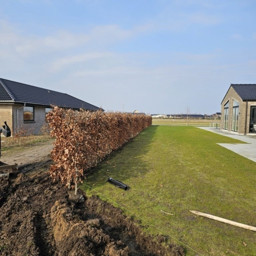 - Anlægsprojekter – anlæg af græsplæner, støttemure, gangstier og plantning af færdighæk. Vi tilbyder også etablering af hegn og udfører brolægning.